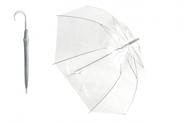 Holový vystřelovací deštník klasického tvaru. Díky průhlednému potahu vidíte okolo sebe. Po složení má klasické zapínání na patent. Délka deštníku: 82 cm Průměr deštníku: 100 cm