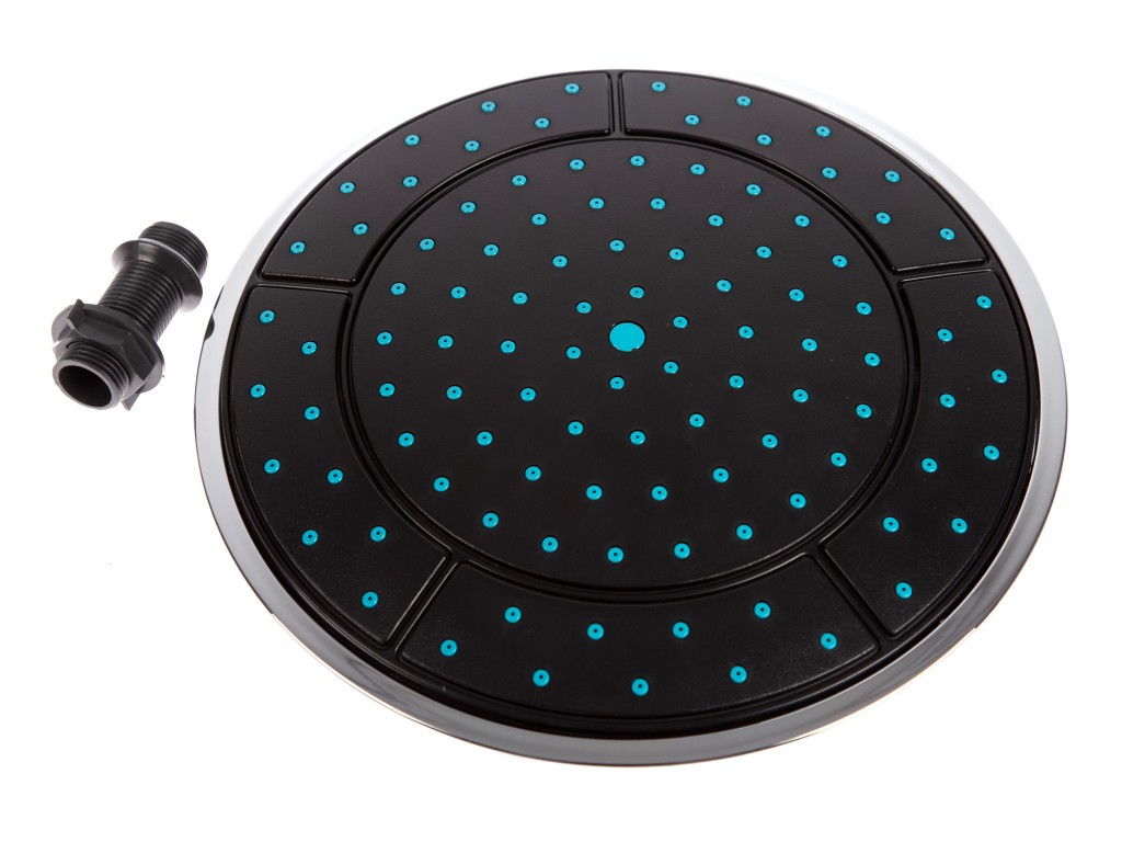 Originální dešťová sprcha pro hydromasážní kabinu Kerra "Lisa/Oviedo/Leticia/Paulina/Vigo/Carina/Carlos/Claire/Fantasia/Gibraltar/Juan/Jukon/Laguna/Laura/Lena/Mauri/Maxi/Miranda/Mocca/Nelle/P 135/Pedros/Presto/Rita/Sena/Silver Diamond/Silver Prime/Tuluza/XL" Sprchová hlavice má gumové trysky, takže se dá snadno vyčistit od vodního kamene. Díky snadné údržbě je možné výrazně prodloužit jeho životnost. Průměr sprchové hlavice je 25 cm, připojovací závit je 1/2", takže ji lze přizpůsobit většině sprchových kabin dostupných na trhu.
