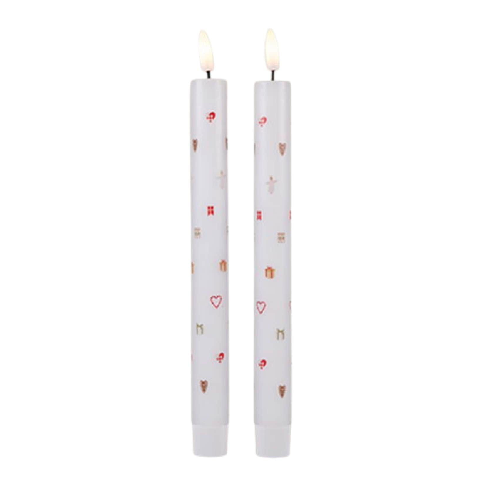 LED svíčky Christmas Holidays od Det Gamle Apotek jsou dodávány v sadě dvou kusů v elegantní krabičce. Jsou praktické, stylové a ideální pro všechny, kdo chtějí kouzlo svíček bez rizika otevřeného ohně. délka 24,5 cm / průměr 2 cm Vyrobeno z pravého vosku.