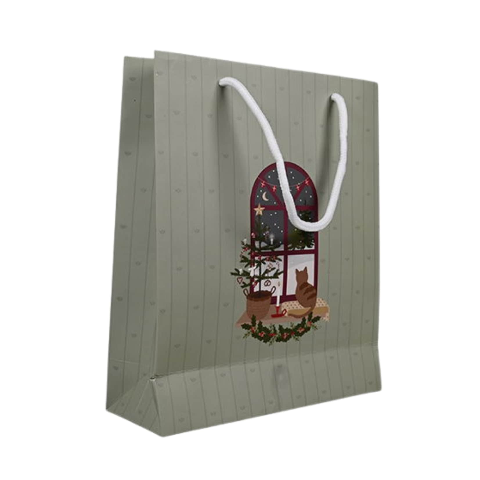 Det Gamle Apotek Papírová taška Christmas Holidays Cat – small, zelená barva, papír. Dárková taška od Det Gamle Apotek z kolekce Christmas Holidays snadno a rychle zabalí dárek a potěší obdarovaného rovnou dvojnásob. Na zastřeně zeleném podkladu nechává vyniknout roztomilé ilustraci, která sálá sváteční pohodou.