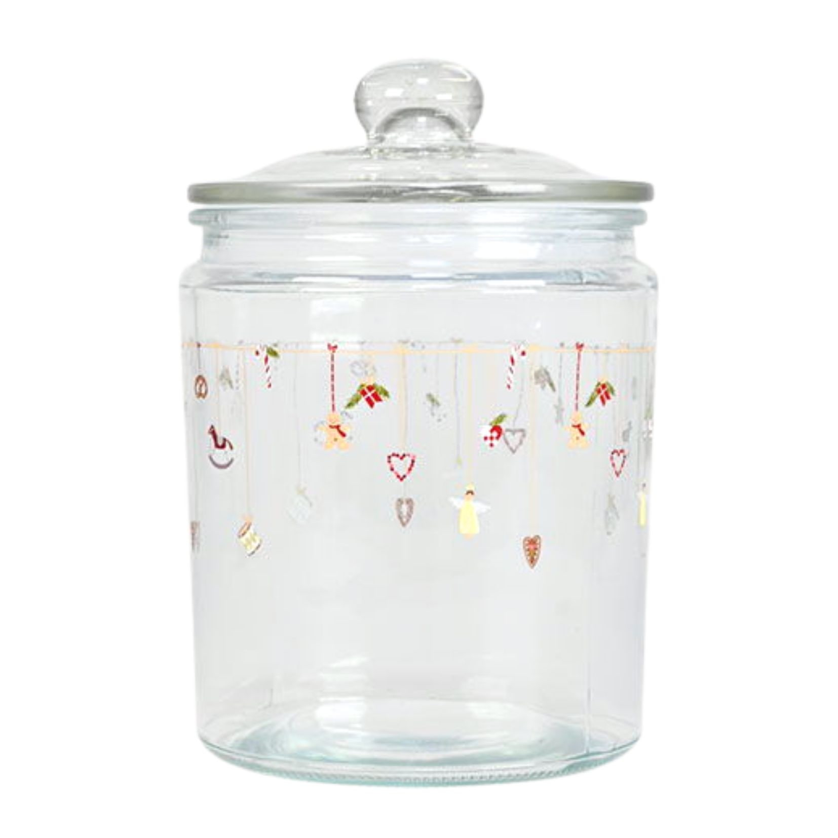 Det Gamle Apotek Skleněná dóza Christmas Holidays Ornaments 21,8 m, čirá barva, sklo. Tato skleněná dóza od Det Gamle Apotek z kolekce Christmas Holidays je krásným doplňkem do interiéru v kouzelném zimním období. Dóza je zdobena vánočním motivem v podobě hned několik vánočních ozdob navěšených po obvodu dózy. Skvěle poslouží jako úložná dóza na cukroví, vánoční sladkosti, ale i na čajové svíčky nebo jako dekorativní prvek do kuchyně či obývacího pokoje.