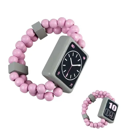 Detoa Dřevěné oboustranné hodinky růžové / od 3 let