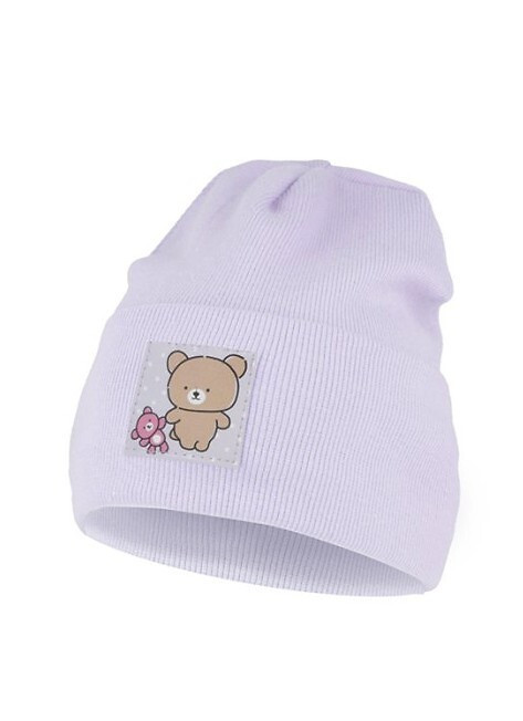 Dívčí jarní klobouk - jemná žebrovaná bavlna - lemovaný okraj, zdobený nášivkou medvídka Složení: 95 % bavlna, 5 % elastan