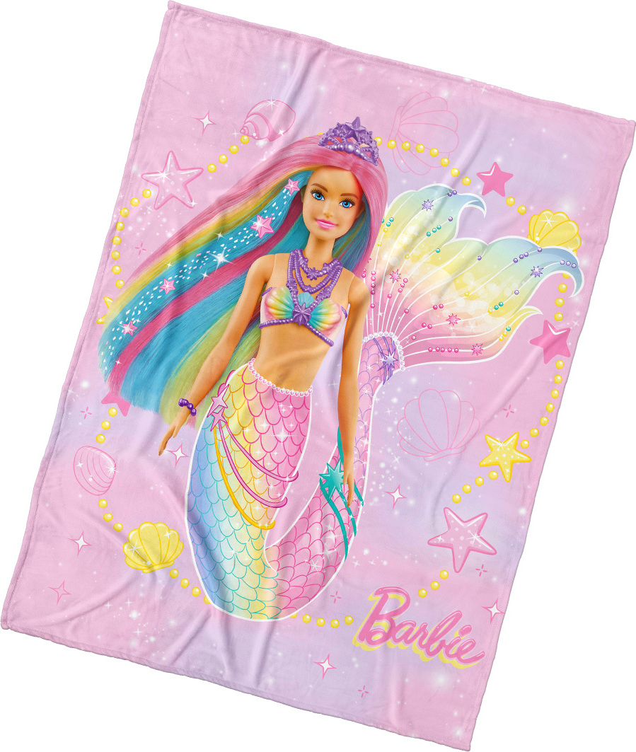 Plyšová deka s princeznou vílou Barbie Dětská deka Barbie Mořská Princezna, je vyrobena z měkkého a hřejivého coral fleecuMěkoučká plyšová deka má rozměry 150x200 cm, s gramáží 220 g/m² Na lícní straně růžové deky je Barbie jako mořská panna s krásným, duhovým ocasemMá dlouhé vlasy v duhových barvách, které ladí s jejím ocasem a také duhový, třpytivý topOkolo Barbie jsou dekorativní prvky, jako hvězdice, mušle a zlaté kruhy, které dodávají dece podmořský nádechDětská deka Barbie Mořská Princezna se také pyšní certifikátem Oeko-Tex Standard 100V naší nabídce naleznete také další deky, povlečení, osušky a polštářky s princeznou Barbie a dalšími panenkami Protože je deka vyrobena z mikroplyšového materiálu (Coral Fleece), nabízí hned několik výhodMikroplyšový materiál má jemný a sametový vzhled s krátkými vlákny, které vypadají jako korálové útesy, odtud pochází jeho názevPokud jde o teplo, plyšové deky zadržují teplo a tvoří izolační vrstvu, což znamená, že udržují teplo blízko vašeho tělaDeka je odolná vůči pomačkání, takže si po dlouhém používání stále udržují svůj tvar a vzhled Údržba deky je velice snadná, držte se při praní symbolů, které jsou uvedeny na obaleNepoužívejte při praní prací prostředky s obsahem bělidel a rozjasňujících substancíOdstřeďujte při nižších otáčkách, aby nedošlo k polámání a poškození vlákenAvivážní prostředky nedoporučujeme používat, mohu slepit vlákna a tím snížit savost Odstíny barev obrázků se mohou barevně lišit, v závislosti na nastavení vašeho monitoru