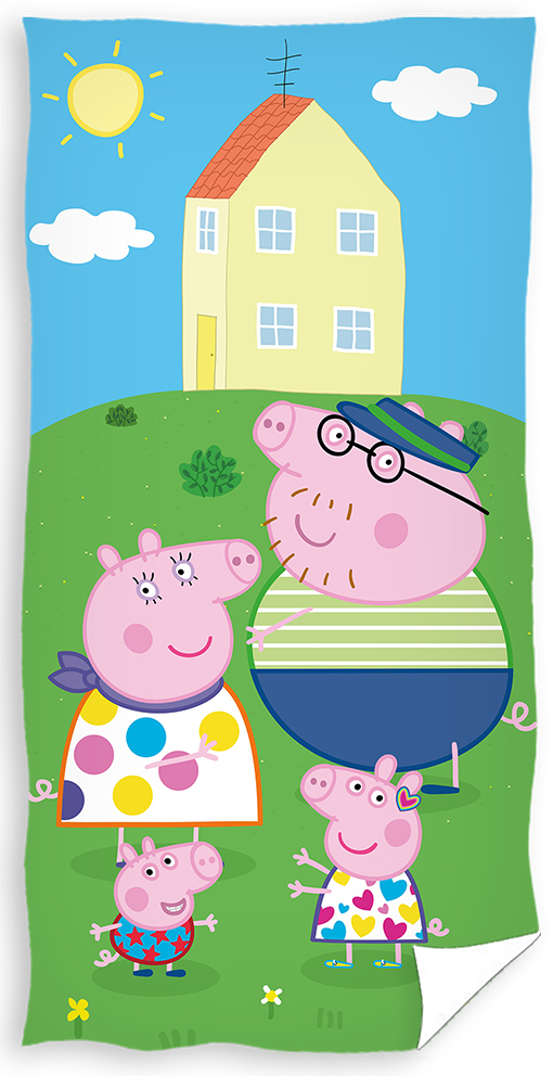Froté osuška s Pepinkou a její rodinkou Dětská osuška Prasátko Pepina Zábava na Zahradě, je vyrobena ze 100% bavlny a její rozměry jsou 70x140 cm, s gramáží 300 g/m²Na lícní straně světle modré froté osušky je Prasátko Pepina s celou svou rodinkouCelá rodinka si spolu velmi ráda hraje venku na zahradě před jejich domečkemDnešní hru vymýšlel Tomík a ten si moc rád hraje na honěnou, tak schválně koho Tomík chytí jako prvního?Barevná strana osušky je z jemně střiženého froté, velurová, velice příjemná na dotekReverzní stranu tvoří hustě tkaná froté smyčka bílé barvyOsuška má certifikát Oeko-Tex Standard 100Kromě osušek najdete v naší nabídce také povlečení, deky a polštářky s Prasátkem Pepinou Osušku perte dle symbolů uvedených na štítku Nepoužívejte prací prostředky s obsahem bělících a rozjasňujících substancíOdstřeďujte při nižších otáčkách, aby nedošlo k polámání, a tak k trvalému poškození bavlněných vlákenAvivážní prostředky nedoporučujeme používat, mohu slepit vlákna a tím snížit savost Odstíny barev obrázků se mohou barevně lišit, v závislosti na nastavení Vašeho monitoru