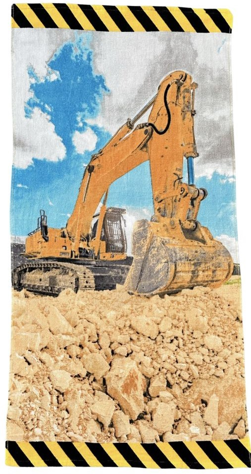 Froté osuška se žlutým bagrem Dětská osuška Žlutý Bagr, je vyrobena ze 100% bavlny, s gramáží 300 g/m² v rozměru 70x140 cmNa lícní straně osušky je obrázek obrovského žlutého bagru, který má za úkol vyhloubit velkou jámuVrchní i spodní část osušky je lemovaná žlutými a černými pásky, která připomínají výstražnou páskuJe jen málo dětí z řad chlapecké populace, které by tyto těžké pracovní stroje nezajímaliBarevná, tedy lícní strana osušky je z jemně střiženého froté, velurová, velice příjemná na dotekReverzní stranu osušky tvoří hustě tkaná froté smyčka bílé barvy, která zaručuje dobrou savostOsuška není tištěná fototiskem Při praní osušky dodržujte symboly, které jsou uvedeny na štítkuNepoužívejte prací prostředky s obsahem bělících a rozjasňujících substancíOdstřeďujte při nižších otáčkách, aby nedošlo k poškození a polámání bavlněných vlákenAvivážní prostředky nedoporučujeme používat, mohou slepit vlákna, a tím snížit savost Odstíny barev obrázků se mohou barevně lehce lišit, v závislosti na nastavení Vašeho monitoru