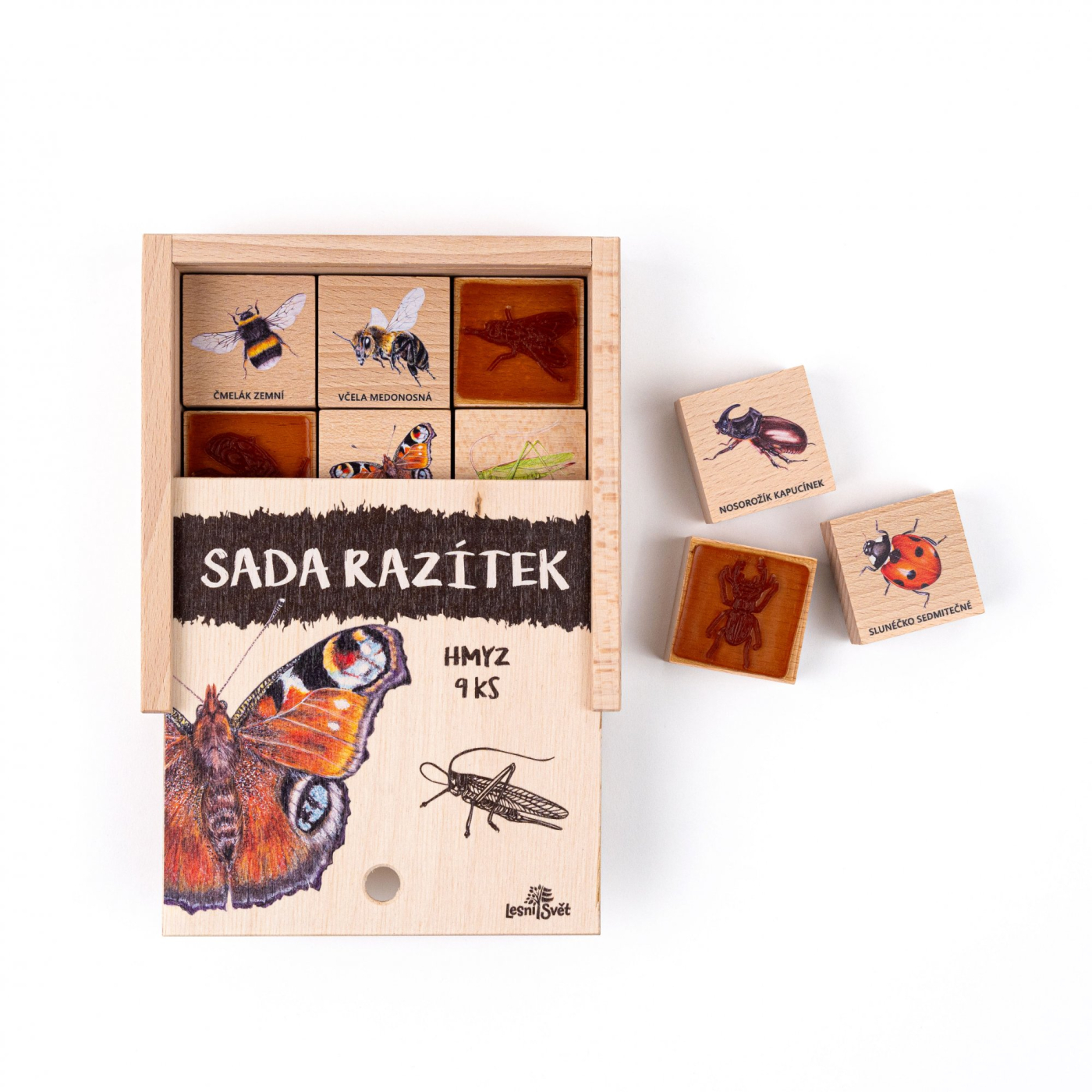 Rozvíjejte dětskou fantazii Razítkování je kouzelná činnost, která děti přirozeně vtáhne do světa tvoření! Stačí chvilka a z obyčejného papíru se stane příběh plný nápadů. Razítkování pomáhá rozvíjet jemnou motoriku. Podporuje koordinaci ruky a očí. Učí děti poznávat nové tvary. Razítka jsou skvělým pomocníkem nejen při volném tvoření, ale také v předškolní a školní výuce. Ať už je to doma, ve školce nebo na táboře Lze je využít při hravém seznamování s přírodou, děti mohou razítky označovat pracovní listy, vytvářet vlastní knížky apod. Razítka z Lesního světa 9 dřevěných razítek s motivy hmyzu Velikost razítek: 4,5×4,5 cm – ideální pro dětskou ručku Přírodní dřevěná kostka s hladkým opracováním (certifikát PEFC) Dřevěné krabička z masivu s vysouvacím víkem 16 x 16 x 4 cm České výrobky z Hradce Králové Originální obrázky od českých ilustrátorů Motivy razítek: ruměnice pospolná, moucha domácí, čmelák zemní, babočka paví oko, roháč obecný, včela medonosná, nosorožík kapucínek, slunéčko sedmitečné, kobylka zelená Jirka Novák, malíř a ilustrátor Tvoří převážně realistické kresby fauny a flóry. Ilustrátor učebních pomůcek, naučných tabulí a her s tématikou českých živočichů. Více o Jirkovi Tipy na razítkování Razítka otevírají dětem i dospělým nekonečné možnosti tvoření! Zde jsou tři inspirace, jak razítka využít naplno: ✅ Tisk na papír a karton. Vytvářejte obrázky plné lesních zvířátek, ilustrujte vlastní pohádky a komiksy. Vyrobte si originální pohlednice, visačky na dárky nebo obaly na sešity. ✅ Otisk do rychleschnoucí hmoty. Vytvořte si vlastní dekorace nebo přívěsky na klíče. Z otisků vyrobte originální pečetě na dárky či dopisy. Experimentujte s nátěrem. ✅ Tisk do plastelíny. Pomáhá dětem rozvíjet jemnou motoriku a vnímat různé textury. Skvělá aktivita pro předškoláky. Může se hodit Papírové bloky Nemáte po ruce prázdný papír na razítkování? Naše bloky jsou z ekologického papíru a navíc s krásnými ilustracemi. Dostupné ve velikostech A4, A5 i A6. Papírové bloky VšudyLEPKY Neobyčejné originální samolepky s motivy zvířat snadno doplní razítkování o nový prvek. VšudyLEPKU můžete opakovaně přemisťovat. VšudyLEPKY Vylomeniny Oblíbený doplněk sensory play. Děti milují svět fantazie. A zvířátka vypadají skutečně jako živá. Snadno s nimi dotvoříte příběh na papíru i mimo něj. Vylomeniny