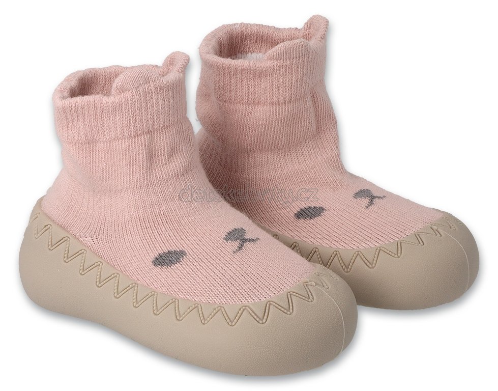 Dětské nazouvací botičky pro nejmenší. Lehké, šetrné k jemné pokožce dítěte, doporučeno pro nejmenší miminka. Dětské nazouvací boty, které se skládají z elastické ponožky a protiskluzové podešve, nezatěžují nohy dítěte a netlačí na ně. Tvar boty usnadňuje usazení nohy a neklouže. Tento výrobek je šetrný k životnímu prostředí, a to vše díky použití podrážky z TPE materiálu, který je pro batole bezpečný a zároveň recyklovatelný. Vtipný zvířecí motiv na ponožce je další ozdobou těchto nazouvacích botiček. Velikost, která nelze výše zvolit, není dostupná. Po zvolení požadované velikosti, se aktualizuje dostupnost na jednotlivých skladech. Velikost Rozměr v milimetrech 20 128 21 135 Podrobnosti jak změřit nohu, vybrat správnou velikost a další informace najdete ZDE -