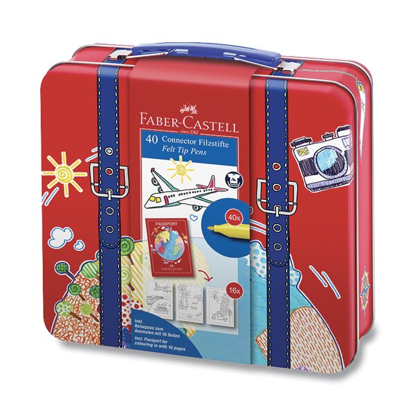 Souprava 40 barev fixů se spojovacími klipy v dárkovém kufříku s příslušenstvím. fixy umožňují zábavné vzájemné spojování pomocí klipů, spojovací klipy součástí balení, inkoust na vodní bázi, pevný a silný hrot, intenzivní barvy, vhodné k malování větších ploch, součástí balení 6 spojovacích klipů a omalovánky Zakupte produkt Dětské fixy Faber-Castell Connector, kufřík, 40 barev z kategorie Psací potřeby | Fixy | Sady od výrobce Faber-Castell za cenu 429 Kč.