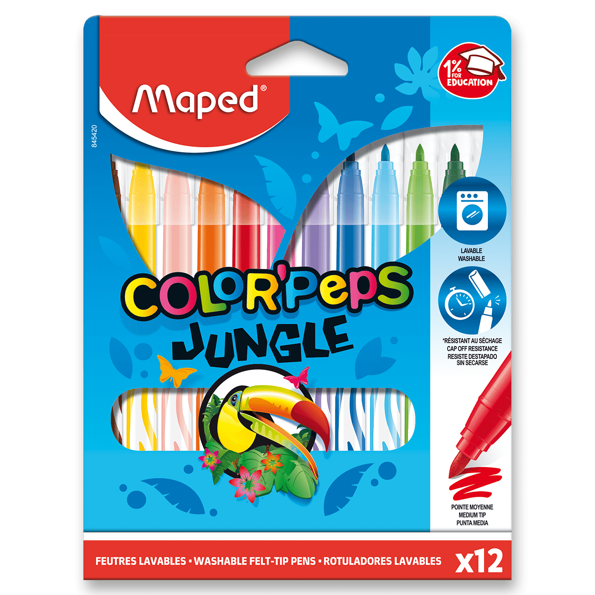 Soupravy barevných fixů Color'Peps se snadno omyvatelným inkoustem. Zářivé barvy vypratelné z většiny textilií. Hrot odolný proti zatlačení. Šíře stopy 2,8 mm. Přednosti: bezpečnost - prodyšný uzávěr odolnost - hrot odolný proti zatlačení či poškození vypratelné - inkoust vypratelný z většiny textilií při praní v pračce na 40°C zábavné označení barvy Zakupte produkt Dětské fixy Maped Color'Peps Jungle, 12 barev z kategorie Psací potřeby | Fixy | Sady od výrobce Maped za cenu 86 Kč.