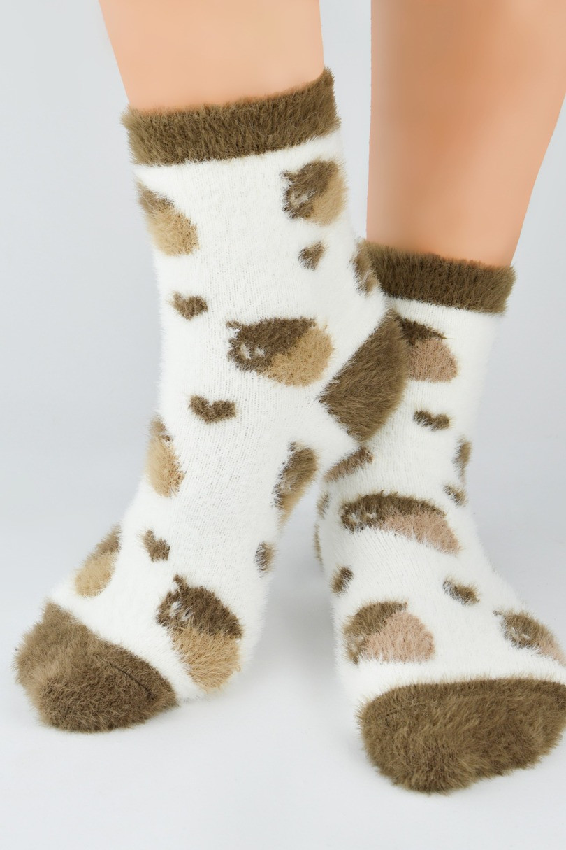Dětské ponožky s kaštanovým vzorem z měkkého, nadýchaného úpletu. .