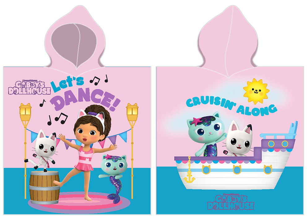 Dětské pončo s Gábi a kočičími přáteli Pončo pro děti Gábinin Kouzelný Domek Pojďme Tančit, je vyrobeno ze 100% bavlny s gramáží 300 g/m²Růžové froté pončo s kapucí je určeno všem malým slečnám, které mají rády příběhy Gaby's DollhouseMalá slečna Gábi si nejraději hraje se svým kouzelným kočičím domečkem a kočičími kamarádyNa předním díle ponča Je Gábi s Pandy a Mercat, které spolu tančí v příjemném rytmu letní hudbyNa zadní díle ponča je kočička Mercat a Pandy, které se společně vydaly na výlet lodí Není nutno hledat osušku, nebo ručník, když máte po ruce froté pončo s kapucíRozměr ponča je 55x110 cm a je vhodný pro děti od 3 do 6 letLícní strana ponča je z jemně střiženého froté, velurová a její hladký povrch je velice příjemný na dotekVelmi dobrou savost zajistí hustě tkaná froté smyčka, která tvoří rubovou stranu pončaV naší nabídce najdete také osušky a polštářky na téma Gaby DollhousePončo má certifikát Oeko-Tex Standard 100 Pončo perte dle symbolů uvedených na štítkuNepoužívejte prací prostředky s obsahem bělících a rozjasňujících substancíAvivážní prostředky nedoporučujeme používat, mohu slepit vlákna a tím snížit savost Odstíny barev obrázků se mohou lehce lišit, v závislosti na nastavení Vašeho monitoru