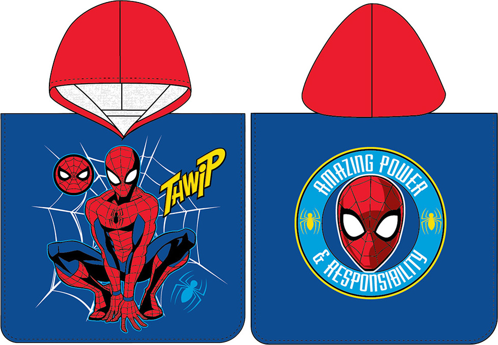 Superhrdinské Pončo s úžasným pavoukem Pončo pro děti Spider-Man Úžasná Síla, je vyrobeno ze 100% bavlny s gramáží 300 g/m²Na přední i zadní straně tohoto superhrdinského ponča je komiksová postava Spider-ManaPro svou obyčejnou neobyčejnost je Spider-Man jedním z největších idolů všech chlapcůChystá se zasáhnout, a proto je v přikrčené pozici, aby se díky pavoučím vláknům mohl dobře a rychle přesunoutVydejte se spolu se Spider-Manem na jeho úžasná dobrodružství Není nutno hledat osušku, nebo ručník, když máte po ruce froté pončo s kapucíRozměr ponča je 50x115 cm a je vhodný pro děti od 3 do 6 letLícní strana ponča je z jemně střiženého froté, velurová a její hladký povrch je velice příjemný na dotekVelmi dobrou savost zajistí hustě tkaná froté smyčka, která tvoří rubovou stranu pončaV naší nabídce naleznete také osušky, deky, povlečení a polštářky se Spider-Manem a dalšími Avengers Pončo perte dle symbolů uvedených na štítku Nepoužívejte prací prostředky s obsahem bělících a rozjasňujících substancíOdstřeďujte při nižších otáčkách, aby nedošlo k polámání, a tak k trvalému poškození bavlněných vláken Avivážní prostředky nedoporučujeme používat, mohu slepit vlákna a tím snížit savost Odstíny barev obrázků se mohou barevně lišit, v závislosti na nastavení Vašeho monitoru