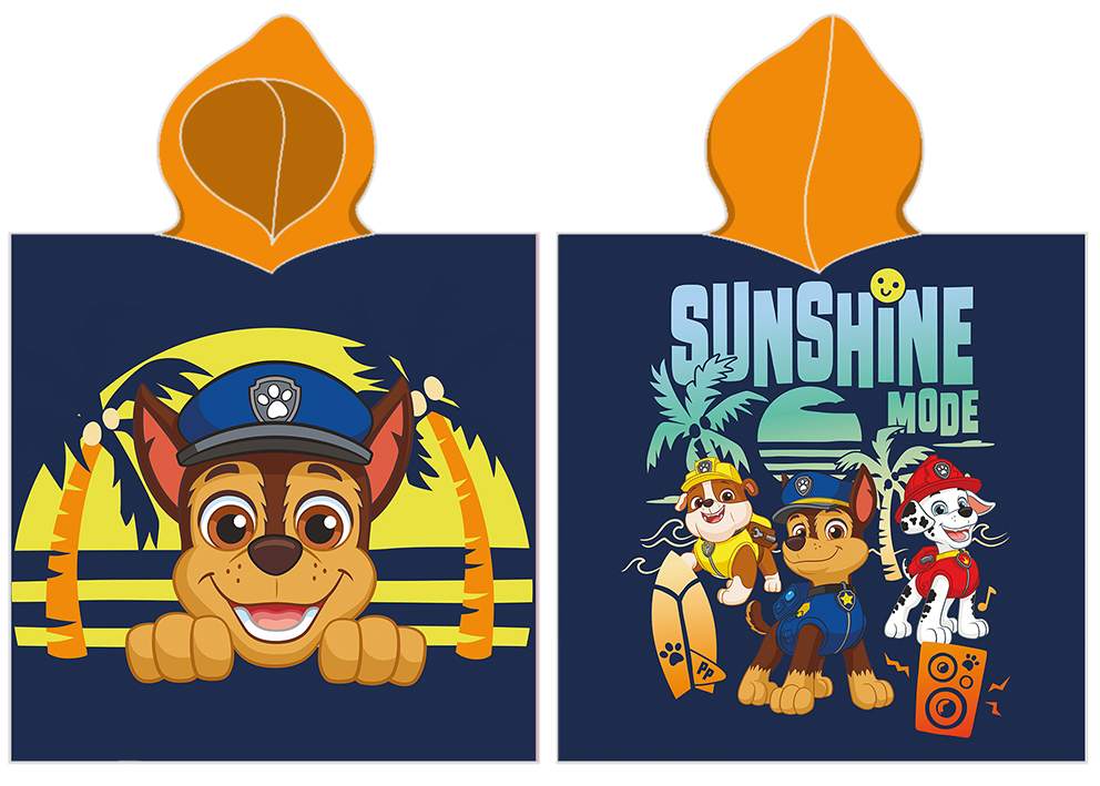 Froté pončo s pejsky u moře Froté pončo pro děti Tlapková Patrola Dovolená u Moře je vyrobeno ze 100% bavlny s gramáží 300 g/m²Na předním i zadním díle ponča jsou pejsci Chase, Rubble a Marshall z Tlapkové PatrolyKaždý si zaslouží dovolenou a naši úžasní pejsci nejsou výjimkou, a proto spolu vyrazili na dovolenouPejsci si moc přáli vidět krásné moře a pláž, a tak je Rider vzal všechny na jejich vysněnou cestu na plážUdělejte svým dětem radost tímto krásným pončem, do kterého se určitě zamilují Není nutno hledat osušku, nebo ručník, když máte po ruce froté pončo s kapucíPončo má rozměry 55x110 cm, a je vhodný pro děti od 3 do 6 letLícní strana ponča je z jemně střiženého froté, velurová a její hladký povrch je velice příjemný na dotekVelmi dobrou savost zajistí hustě tkaná froté smyčka, která tvoří rubovou stranu pončaV naší nabídce naleznete další produkty s pejsky z Tlapkové PatrolyPončo má certifikát Oeko-Tex Standard 100 Pončo perte dle symbolů uvedených na štítkuNepoužívejte prací prostředky s obsahem bělících a rozjasňujících substancíOdstřeďujte při nižších otáčkách, aby nedošlo k polámání, a tak k trvalému poškození bavlněných vlákenAvivážní prostředky nedoporučujeme používat, mohu slepit vlákna a tím snížit savost Odstíny barev obrázků se mohou lehce lišit, v závislosti na nastavení Vašeho monitoru