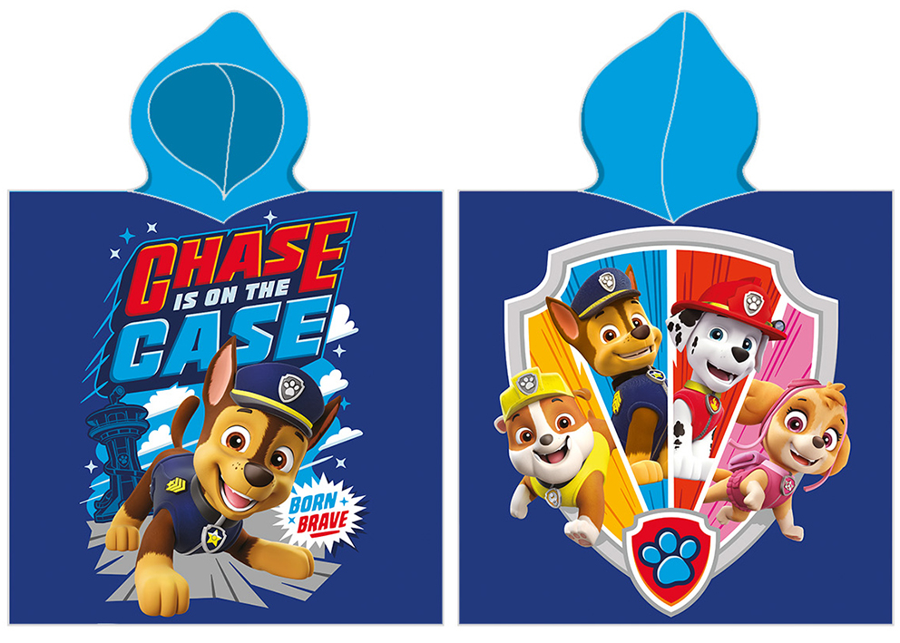 Froté pončo s hrdinným týmem Paw Patrol Froté pončo pro děti Tlapková Patrola Erb Tlapek je vyrobeno ze 100% bavlny s gramáží 300 g/m²Na přední straně ponča je hrdinný pejsek Chase, který je připraven na další záchrannou misiNa zadní straně jsou pejsci z Paw Patrol, kteří jakoby vyskakují z barevné psí známkyKaždý z pejsků vyskakuje ze své barvičky, tedy Chase z modré, Marshall z červené, Skye z růžové a Rubble ze žluté Není nutno hledat osušku, nebo ručník, když máte po ruce froté pončo s kapucíPončo má rozměry 55x110 cm, a je vhodný pro děti od 3 do 6 letLícní strana ponča je z jemně střiženého froté, velurová a její hladký povrch je velice příjemný na dotekVelmi dobrou savost zajistí hustě tkaná froté smyčka, která tvoří rubovou stranu pončaV naší nabídce naleznete další produkty s pejsky z Tlapkové PatrolyPončo má certifikát Oeko-Tex Standard 100Pončo perte dle symbolů uvedených na štítkuNepoužívejte prací prostředky s obsahem bělících a rozjasňujících substancíOdstřeďujte při nižších otáčkách, aby nedošlo k polámání, a tak k trvalému poškození bavlněných vlákenAvivážní prostředky nedoporučujeme používat, mohu slepit vlákna a tím snížit savostOdstíny barev obrázků se mohou lehce lišit, v závislosti na nastavení Vašeho monitoru