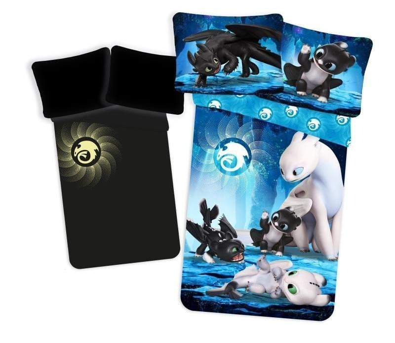 Ložní souprava, která svítí ve tmě! Pro tento efekt stačí povlečení vystavit na krátkou dobu dennímu světlu. Souprava je o velikosti 140 x 200 cm + 70 x 90 cm a je vyrobena z kvalitní 100% bavlny. Souprava má zipový uzávěr.
