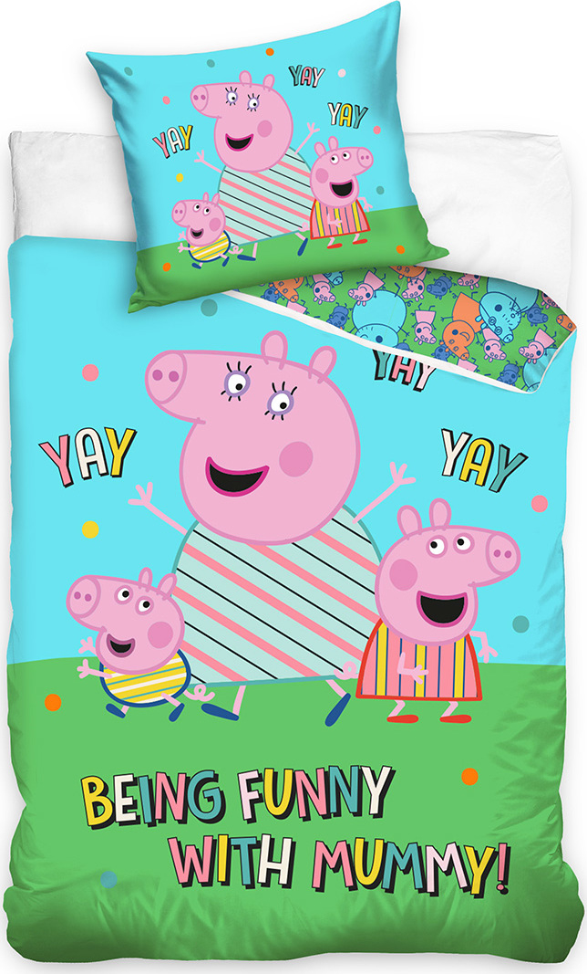 povlečení s Pepinkou, Tomíkem a maminkou Dětské povlečení Prasátko Pepina Nejlepší Maminka je vyrobeno ze 100% hladké bavlny renforceToto oboustranné povlečení má rozměry peřiny 140x200 cm a polštáře 70x90 cm Kdo má tu nejlepší maminku na celém světě? Přece úplně každý má sovu nejlepší maminkuJe tomu i tak v naší prasečí rodince, kde si dnešní krásný den se svou maminkou užívá i Tomík s PepinkouRubová strana je zelená a jsou na ní barevné obrázky našich oblíbených prasátek Povlak polštáře je z obou stran stejně laděný jako lícní strana povlaku přikrývkyK povlečení doporučujeme prostěradla ve světle modré, zelené a růžové barvěV naší nabídce naleznete také další povlečení, osušky, deky, polštářky a ručníčky s motivy Prasátka PepinyPovlečení má certifikát Oeko-Tex Standard 100 Bavlněné povlečení perte vždy z rubu, se zapnutým zipem, dle symbolů uvedených na obaleNepoužívejte prací prostředky s obsahem bělících a rozjasňujících substancíPovlečení odstřeďujte při menších otáčkách, aby nedošlo k trvalému poškození bavlněných vláken Odstíny barev obrázků se mohou barevně lišit, v závislosti na nastavení Vašeho monitoru