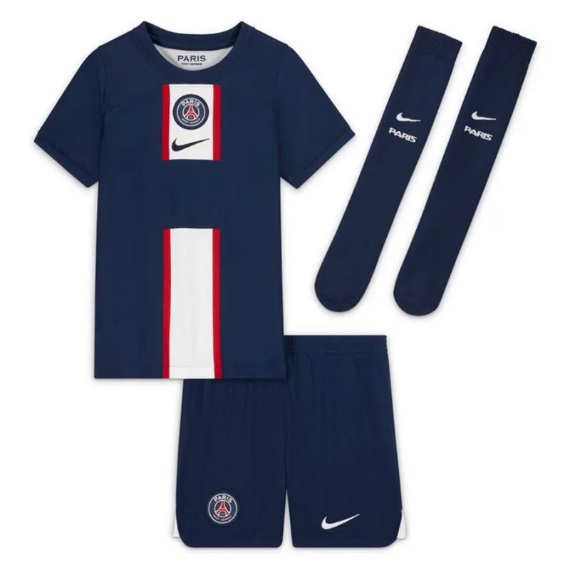 Nike PSG 2022/23 Home Little Kids set DJ7897-411 Vlastnosti: sada značky Nike ideální pro každého mladého fotbalistu skládá se z dresu, šortek, ponožky a kraťasy standardní střih dresu s krátkými rukávy krátké šortky s elastickým pasem logo výrobce Materiál: polyester
