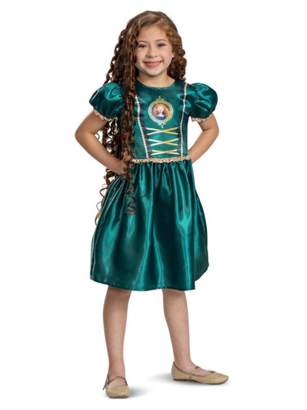 Odvážná a nezávislá princezna Merida se může stát skutečností s tímto nádherným kostýmem! Dlouhé zelené šaty inspirované skotskou legendou jsou ideální volbou pro karnevaly, pohádkové večírky, tematické oslavy nebo školní vystoupení. Kostým lze doplnit o paruku s bohatými kudrnatými vlasy pro dokonalý efekt!
