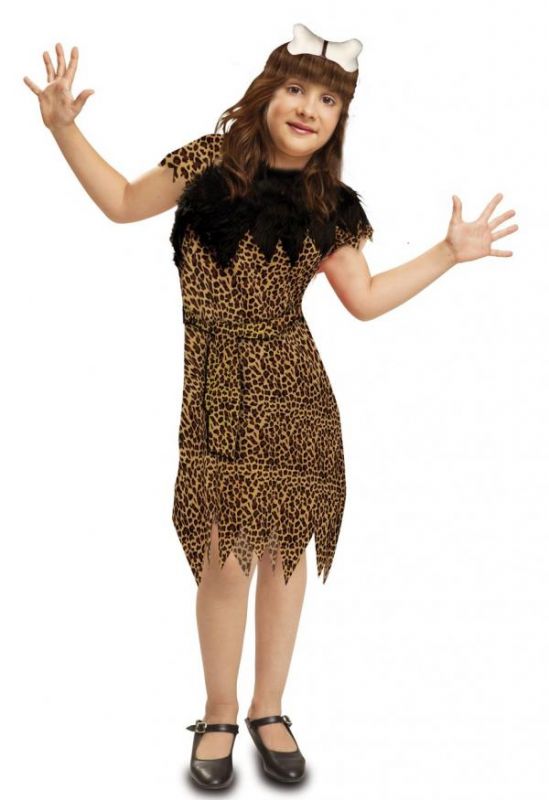 Staňte se pravěkou princeznou s tímto jedinečným kostýmem jeskynní ženy! Hnědé šaty imitující zvířecí kůži mají cípaté rukávy a spodní lem, což dodává kostýmu autentický vzhled. Černý chlupatý pruh na hrudníku umocňuje pravěkou atmosféru. Kostým doplňuje čelenka s kostí a ladící pásek. Vyrobeno z lehkého a pohodlného materiálu. Ideální na karneval, tematickou párty nebo školní představení.