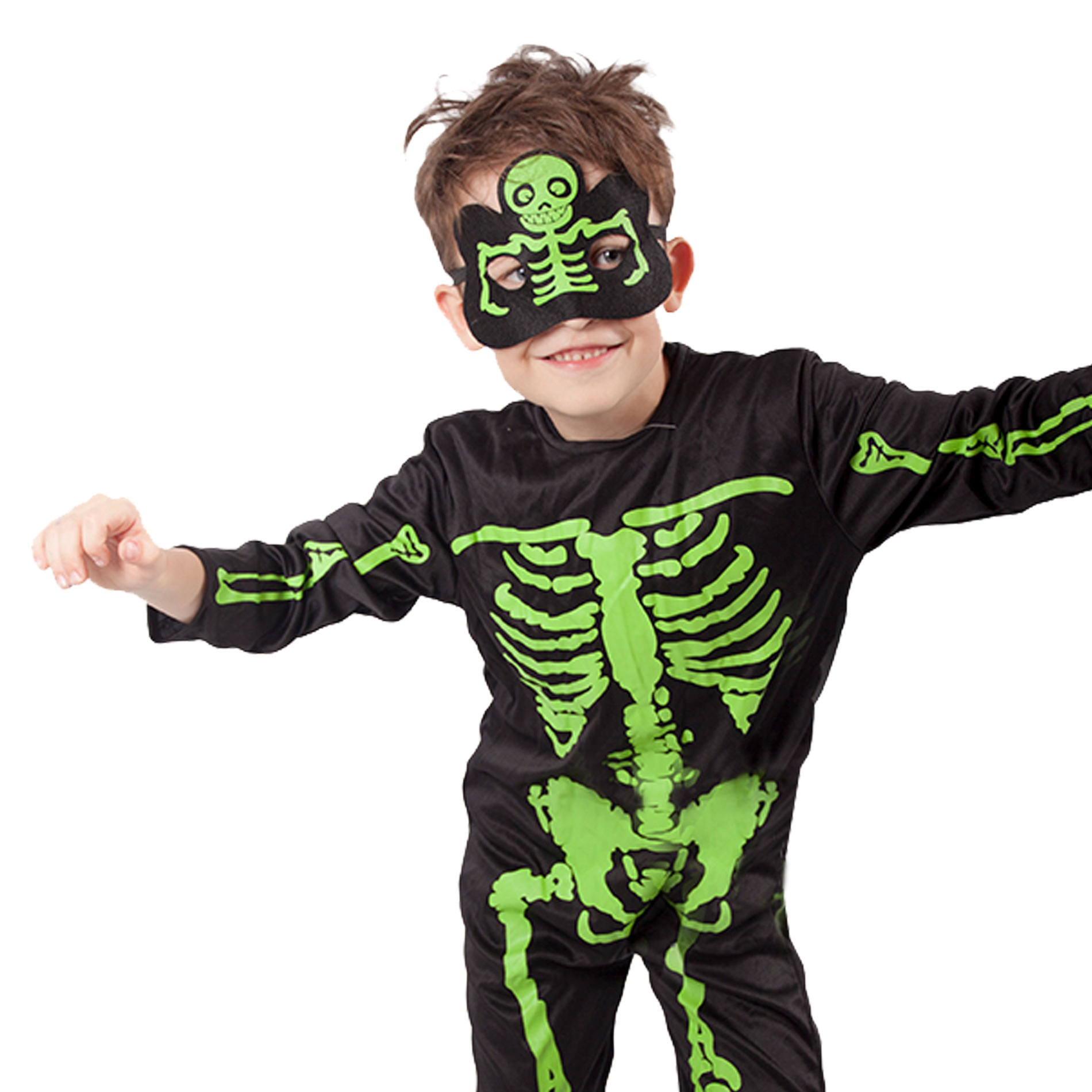 Strašidelný karnevalový kostým s motivem kostlivce! Kostým ve velikosti M je určen pro chlapečky ve věkovém rozmezí 6-8 let. Balení obsahuje černou kombinézu a masku s motivem zeleného kostlivce. Věk: od 3 let Velikost balení: 420x550x10 mm Zakupte produkt Dětský kostým Kostlivec NEON, vel. M z kategorie Hry, hračky, párty, karneval | Karneval | Kostýmy od výrobce RAPPA za cenu 279 Kč.