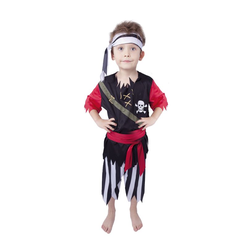Vyplujte na dobrodružnou plavbu s tímto dětským pirátským kostýmem! Skvělá volba pro všechny malé piráty, kteří touží po pokladech a dobrodružstvích. Kostým obsahuje šátek, stylový horní díl s pirátským motivem, kalhoty a pásek, aby byl váš malý námořní lupič připraven na jakoukoli párty nebo maškarní bál. Ideální pro karneval, narozeninové oslavy nebo tematické večírky.