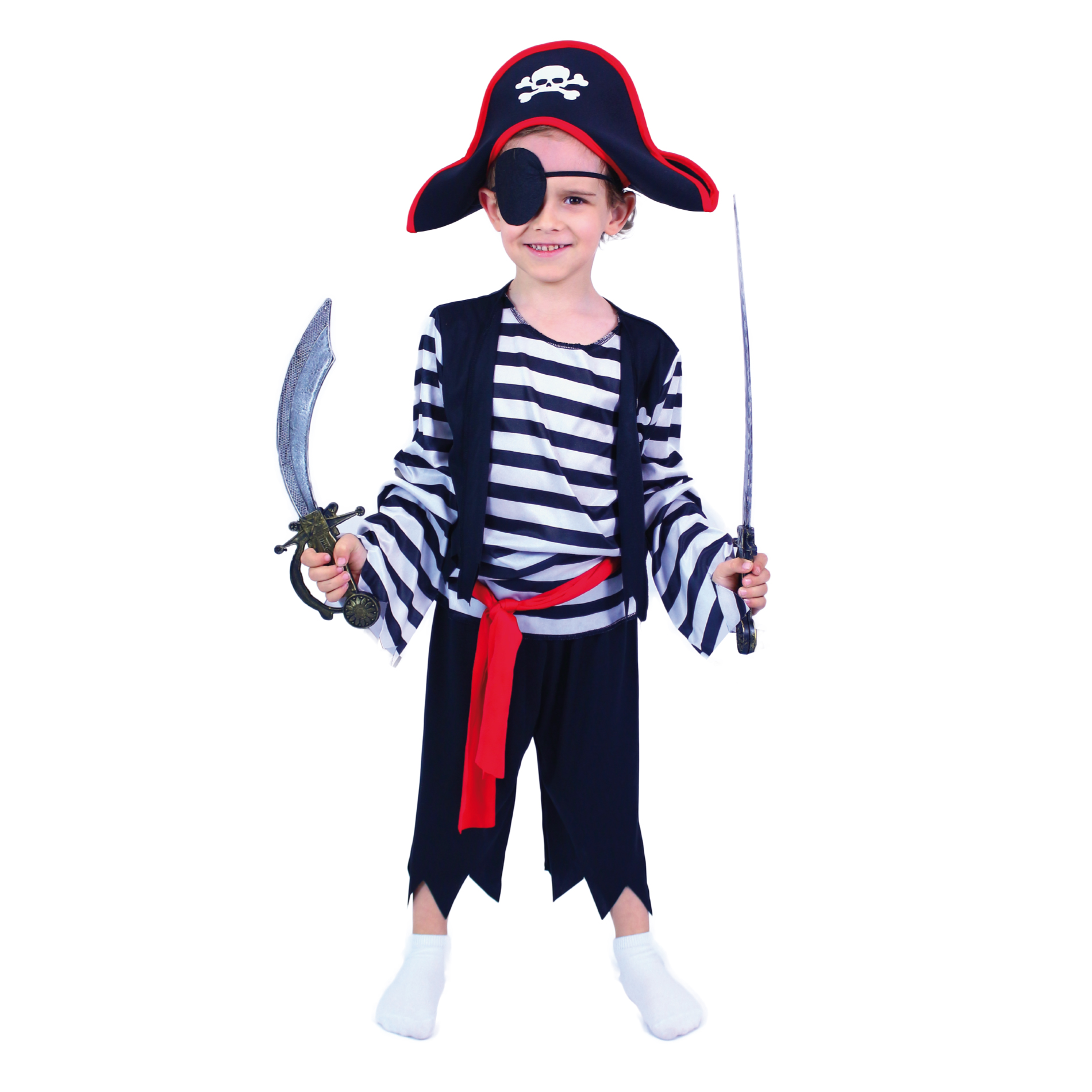 Karnevalový kostým, který tě promění v malého piráta! Kostým ve velikosti S je určen pro chlapce ve věkovém rozmezí 4-6 let (110-116 cm). Balení obsahuje horní díl, kalhoty, pásek, klapku na oko a stylovou pirátskou čepici. Věk: od 4 let Velikost balení: 420x540x30 mm Zakupte produkt Dětský kostým Pirát, vel. S z kategorie Hry, hračky, párty, karneval | Karneval | Kostýmy od výrobce RAPPA za cenu 279 Kč.
