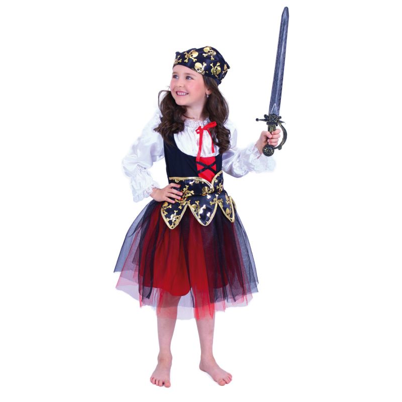 Hledáte dokonalý převlek na párty, karneval nebo tematickou oslavu? S naším kostýmem budete středem pozornosti a zažijete nezapomenutelné chvíle! Dětský kostým pirátka černočervenáStaň se pirátkou, která má styl! Tento krásný saténový kostým s tylovou sukní je ozdoben páskem se zlatým potiskem s motivem lebek. Aby byl kostým kompletní, obsahuje šátek na hlavu ve stejném designu. Tento kostým ve velikosti M je vhodný pro děvčata ve věkovém rozmezí 6-8 let (116-128 cm). Tento produkt je ideální jako karnevalový kostým, zábavný doplněk a skvělý originální převlek pro každou příležitost. Neváhejte a staňte se hvězdou večera s tímto jedinečným kostýmem! Perfektní volba pro kostýmové večírky, rozlučky se svobodou, firemní akce nebo jen tak pro zábavu!