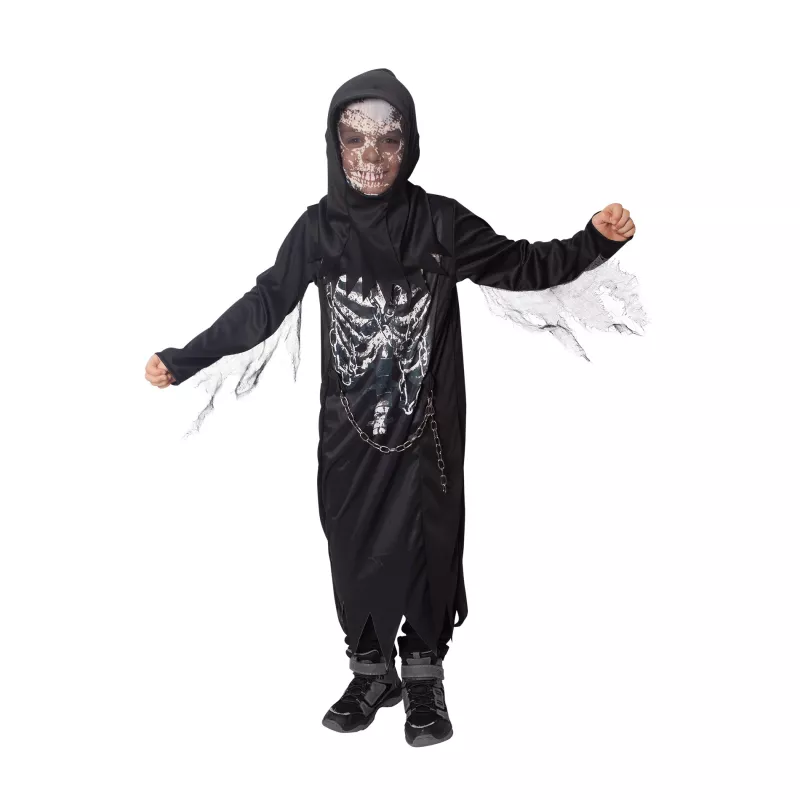 Hledáte dokonalý převlek na párty, karneval nebo tematickou oslavu? S naším kostýmem budete středem pozornosti a zažijete nezapomenutelné chvíle! Dětský kostým smrtkaDěsivý karnevalový kostým s motivem smrtky! Kostým ve velikosti S je určen pro děti ve věkovém rozmezí 3-6 let (105-116 cm). Balení obsahuje černou kombinézu s bílým potiskem kostry a kápí na hlavu. Ideální k oslavě Halloweenu. Tento produkt je ideální jako karnevalový kostým, zábavný doplněk a skvělý originální převlek pro každou příležitost. Neváhejte a staňte se hvězdou večera s tímto jedinečným kostýmem! Perfektní volba pro kostýmové večírky, rozlučky se svobodou, firemní akce nebo jen tak pro zábavu!
