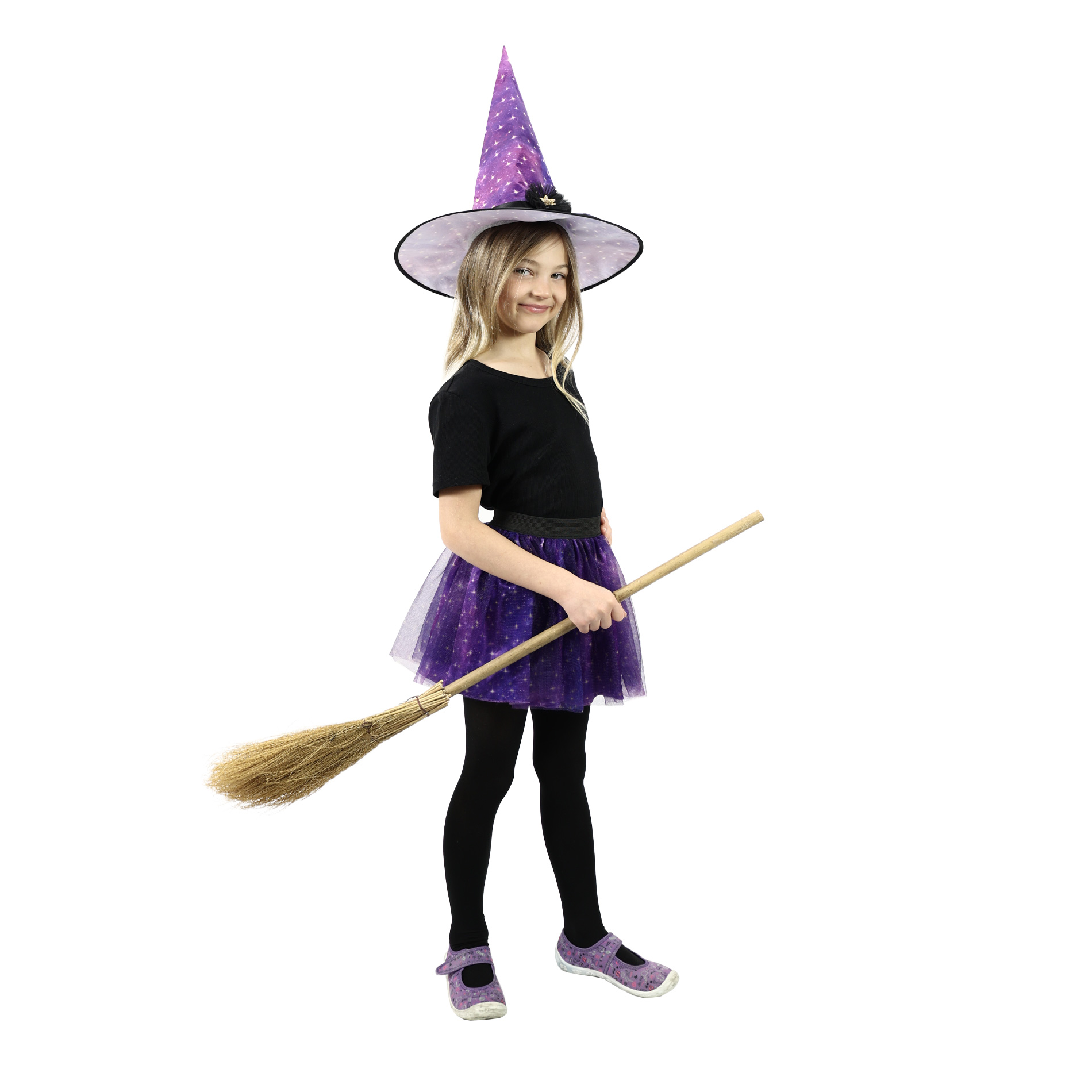 Magický kostýmek fialové barvy zdobený dekorem hvězdiček je určen pro holčičky ve věkovém rozmezí 3-7 let. Balení obsahuje nadýchanou sukničku a k tomu perfektně sladěný klobouk. Sukně je v pase na gumičku. Vhodné i na halloween. Zakupte produkt Dětský kostým - tutu sukně čarodějnice s kloboukem z kategorie Hry, hračky, párty, karneval | Karneval | Kostýmy od výrobce RAPPA za cenu 179 Kč.