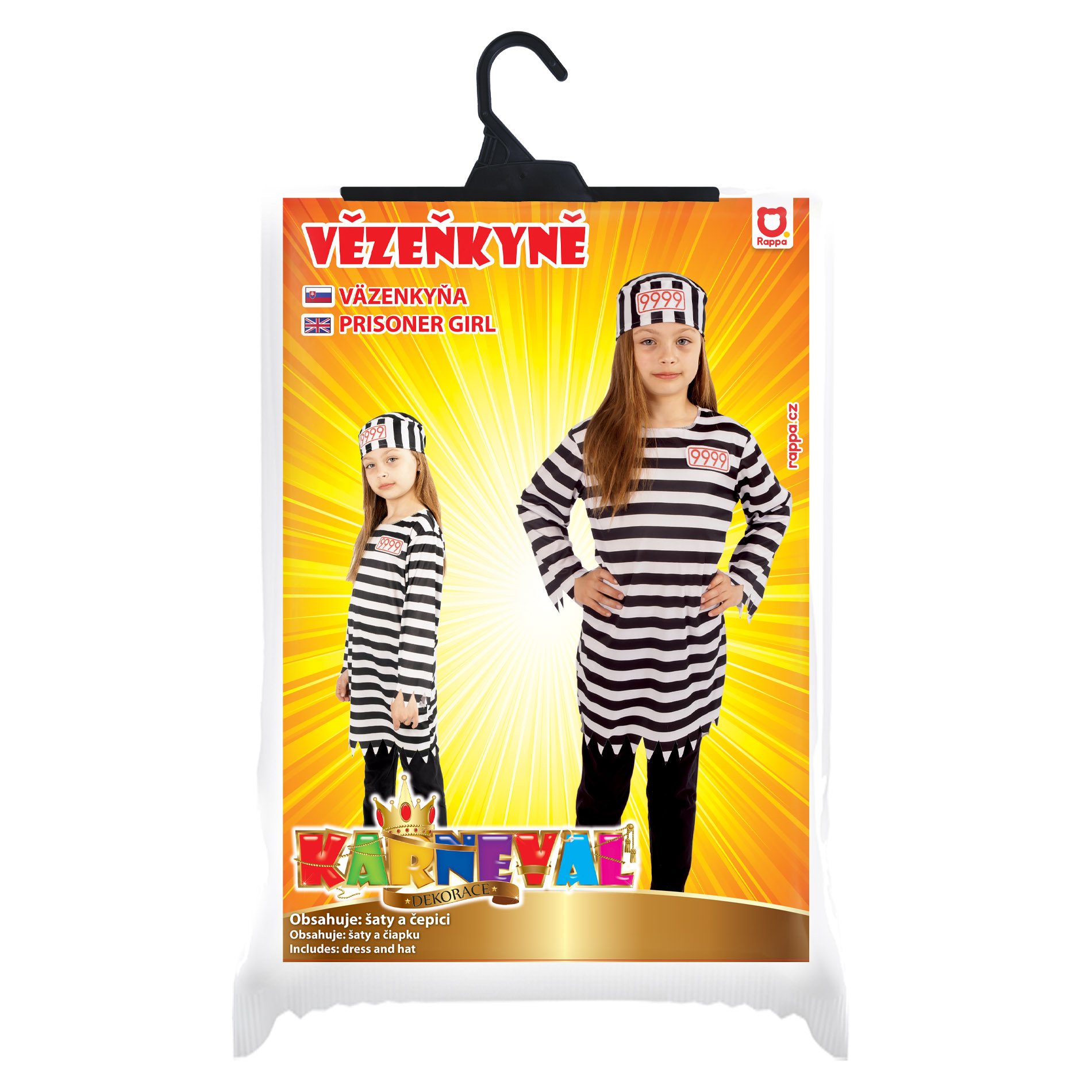 Pruhovaný karnevalový kostým vězeňkyně v typických bílo-černých barvách ve velikosti S je určen pro děvčata ve věku 4-6 let (105-116 cm). Kostým obsahuje dlouhé triko a čepici s číslem vězně. Věk: od 3 let Velikost balení: 400x560x20 mm Zakupte produkt Dětský kostým Vězenkyně, vel. S z kategorie Hry, hračky, párty, karneval | Karneval | Kostýmy od výrobce RAPPA za cenu 113 Kč.