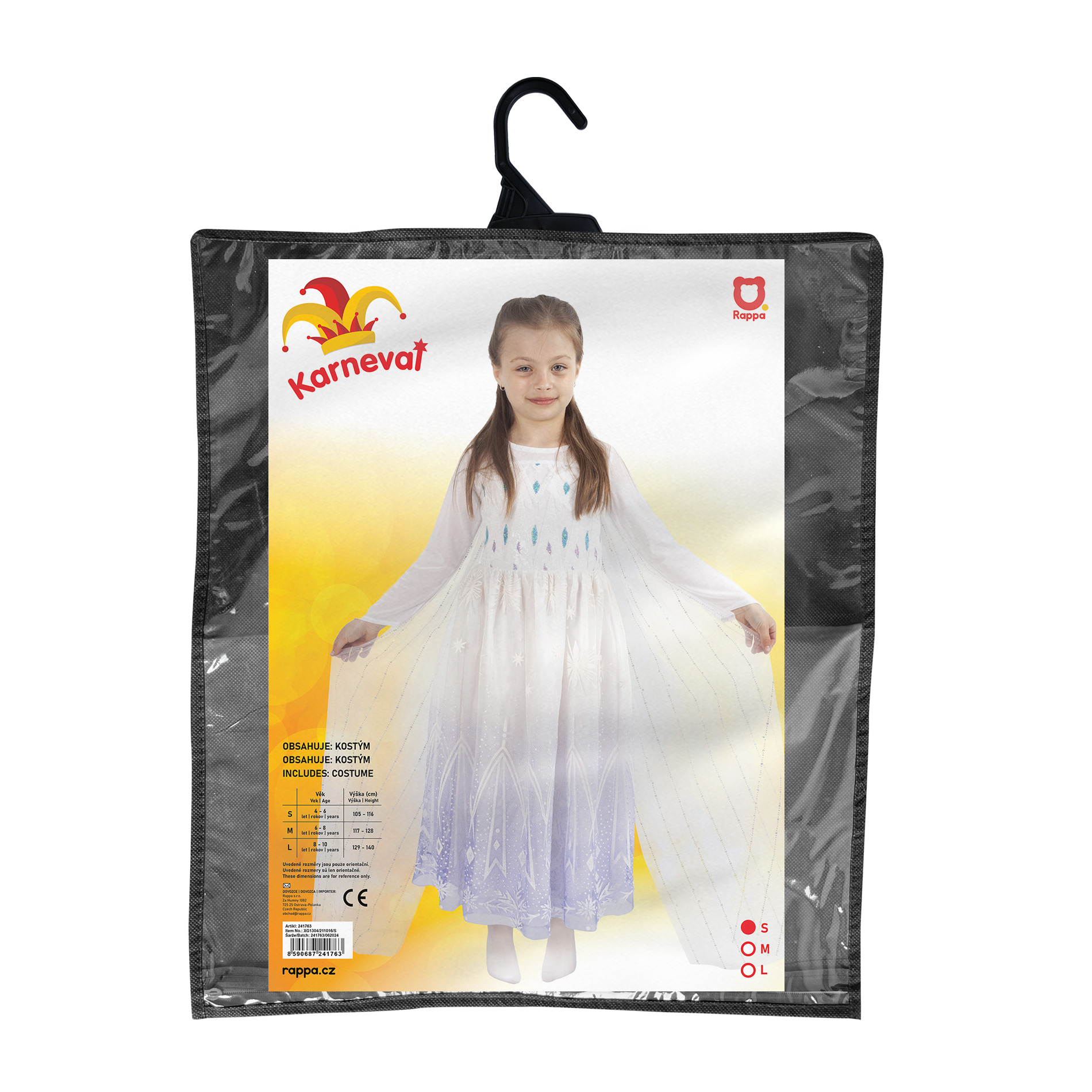 Úchvatný dívčí kostým pro všechny zimní princezny! Dlouhé šaty v bílé barvě jsou v horní části zdobené flitry, od pasu dolů je bílo-fialová tylová sukně zdobena potiskem. Součástí šatů je také vlečka dekorována flitry. Kostým ve velikosti M je určen pro holčičky ve věkovém rozmezí 6-8 let (116-128 cm). Zakupte produkt Dětský kostým zimní královna, vel. S z kategorie Hry, hračky, párty, karneval | Karneval | Kostýmy od výrobce RAPPA za cenu 549 Kč.