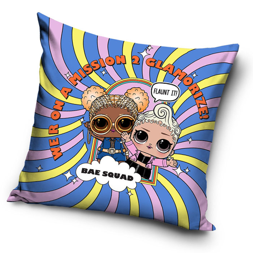 Polštářek s okouzlujícími panenkami L.O.L Dětský polštářek L.O.L. Surprise Glamourize, je vyrobený ze 100% polyesteruNa polštářku jsou dvě okaté panenka L.O.L. z kolekce OMGKdyž se dlouze zadíváme na podklad polštářku vypadá to, jako by nás chtěl očarovatTomu také i odpovídá překlad anglického nápisu "Naše mise je okouzlit vás"Polštářek L.O.L. Surprise Glamourize lze zakoupit také jako samostatný povlakRozměr polštářku je 40x40 cm, a je opatřen zipovým zapínánímVýplň polštářku tvoří netkaná textilie, kterou lze vyjmout a následně povlak vyprat v pračce Povlak na polštář lze prát v pračce, při praní se držte symbolů, uvedených na štítkuPovlak perte z rubu se zapnutý zipovým zapínáním a vyhněte se sušení v sušičce Odstíny barev obrázků s mohou lehce barevně lišit, v závislosti na nastavení vašeho monitoru