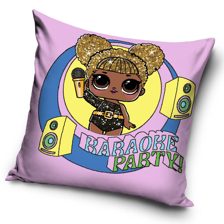 Polštářek se zpívající panenkou L.O.L Dětský polštářek L.O.L. Surprise Karaoke Party, je vyrobený ze 100% polyesteruNa fialkovém polštářku je okatá, zpívající panenka L.O.L. z kolekce OMGPanenka má třpytivé vlásky, které se lesknou stejně jako její stylový oblečekPolštářek doplňují obrázky hudebních bedýnek a nápis "Karaoke party!"Polštářek L.O.L. Surprise Karaoke Party lze zakoupit také jako samostatný povlakRozměr polštářku je 40x40 cm, a je opatřen zipovým zapínánímVýplň polštářku tvoří netkaná textilie, kterou lze vyjmout a následně povlak vyprat v pračce Povlak na polštář lze prát v pračce, při praní se držte symbolů, uvedených na štítkuPovlak perte z rubu se zapnutý zipovým zapínáním a vyhněte se sušení v sušičce Odstíny barev obrázků s mohou lehce barevně lišit, v závislosti na nastavení vašeho monitoru