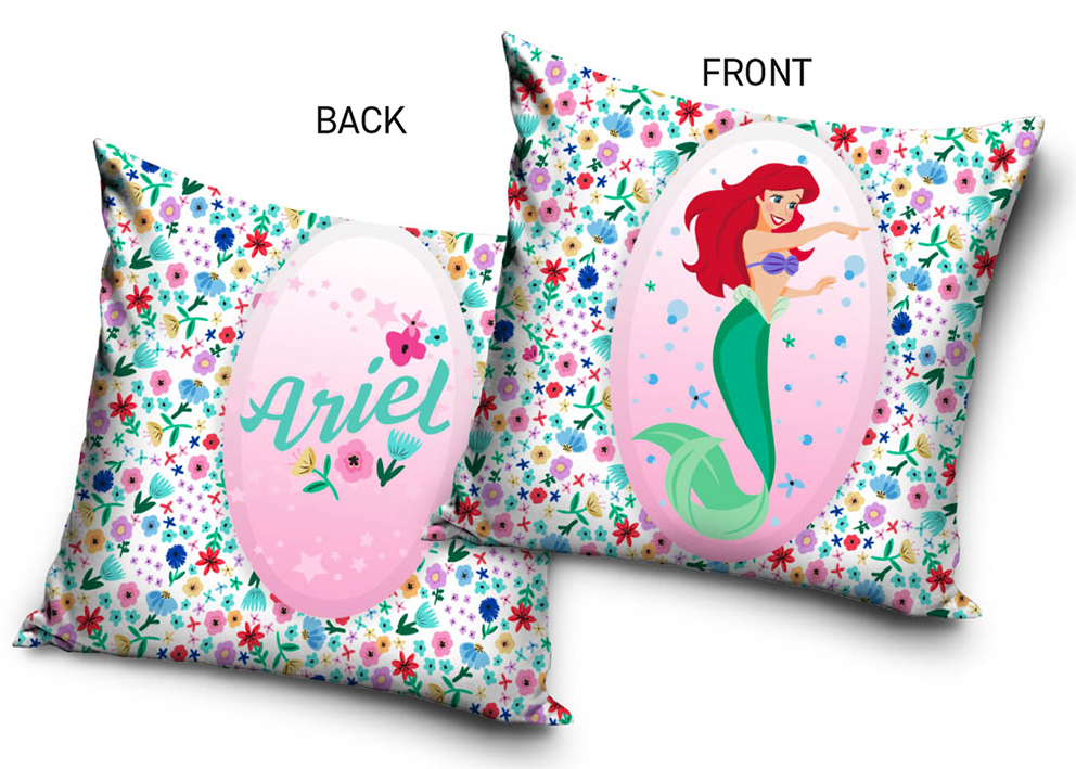 Sametový polštářek s malou mořskou vílou Dětský polštářek Princess Ariel Malá mořská Víla je vyrobený ze 100% polyesteru Povláček má rozměry 40x40 cm s gramáží 190 g/m² a je opatřen praktickým zipovým zapínáním Polštářek je oboustranný, znamená to tedy, že z každé strany je jiný vzorZ jedné strany je v růžové bublince krásná mořská víla Ariel, která je vzorem mnoha malých slečenZe strany druhé je v růžové bublince zelený nápis Ariel, doplněn o krásné květinkyPodklad polštářku tvoří krásné květinky v mnoha různých barvičkáchUdělejte radost tímto polštářkem všem fanouškům malé mořské víly Ariel, ale také milovníkům Disney příběhů Polštářek se vyznačuje svým krátkým a hladkým chloupkem, který připomíná sametTato struktura zajišťuje jasnější barvy na polštářku, které na své kráse neztratí ani po vypráníPolštářek Princess Ariel Malá mořská Víla lze zakoupit také jako samostatný povlakV naší nabídce naleznete další polštářky, povlečení, deky a osušky s Disneyho světem Výplň polštářku tvoří netkaná textilie, kterou lze vyjmout a následně povlak vyprat v pračcePři praní povlaku se držte symbolů, uvedených na štítkuPovlak perte z rubu se zapnutým zipovým zapínáním a vyhněte se sušení v sušičceOdstřeďujte při nižších otáčkách, aby nedošlo k polámání vlákenNepoužívejte prací prostředky s obsahem bělících a rozjasňujících substancí Odstíny barev obrázků s mohou lehce barevně lišit, v závislosti na nastavení vašeho monitoru