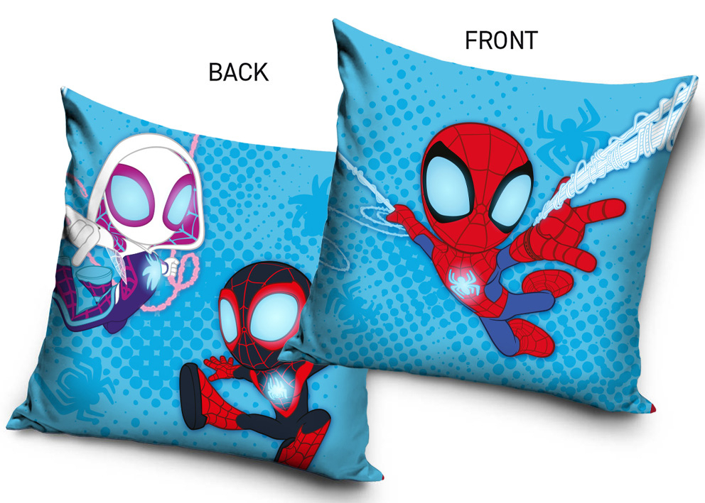 Polštářek Spidey s akčním pavoučím motivem Polštářek Spidey Lapeni v pavučině o rozměru 40 × 40 cm je výrazný a pohodlný doplněk do dětského pokoje malých fanoušků superhrdinů Potah je vyroben z hebkého veluru s gramáží 190 g/m², který má jemný sametový povrch, je příjemný na dotek a vhodný pro každodenní používání Použitý materiál splňuje certifikaci OEKO-TEX®, takže je zdravotně nezávadný a bezpečný i pro dětiUvnitř polštářku se nachází měkká výplň z dutých vláken, která poskytuje pohodlí Díky skrytému zipu lze výplň snadno vyjmout, což usnadňuje údržbu a praní potahu Design polštářku je oboustranný Na přední straně je Spidey zachycen v dynamické akci, jak vystřeluje pavučinu a vyráží vpřed Zadní strana doplňuje motiv dalšími hrdiny ze světa Spidey and His Amazing Friends, kteří jsou zobrazeni v pohybu na svěžím modrém pozadí s pavučinovými a komiksovými prvky Celý motiv působí energicky, hravě a dodává polštářku výrazný superhrdinský charakter Polštářek je ideální jako dekorace, dárek i praktický doplněk pro každodenní použití a skvěle oživí postel, gauč nebo herní koutek v dětském pokoji Při praní povlaku se držte symbolů, uvedených na štítkuPovlak perte z rubu se zapnutým zipovým zapínáním a vyhněte se sušení v sušičceOdstřeďujte při nižších otáčkách, aby nedošlo k polámání vlákenNepoužívejte prací prostředky s obsahem bělících a rozjasňujících substancí Odstíny barev obrázků s mohou lehce barevně lišit, v závislosti na nastavení vašeho monitoru