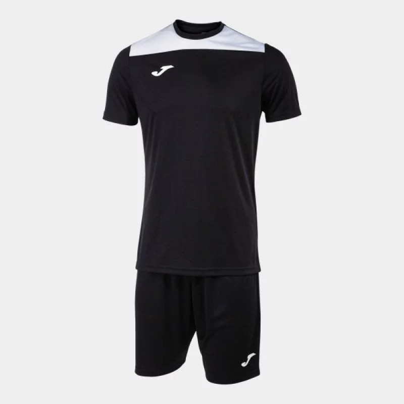 SADA PHOENIX II ČERNÁ BÍLÁ Vlastnosti: Pánská a chlapecká sada Joma. Skládá se z trička s krátkým rukávem a šortek. Lehká a prodyšná tkanina. Materiál: syntetické Barva: černá, bílé vložky