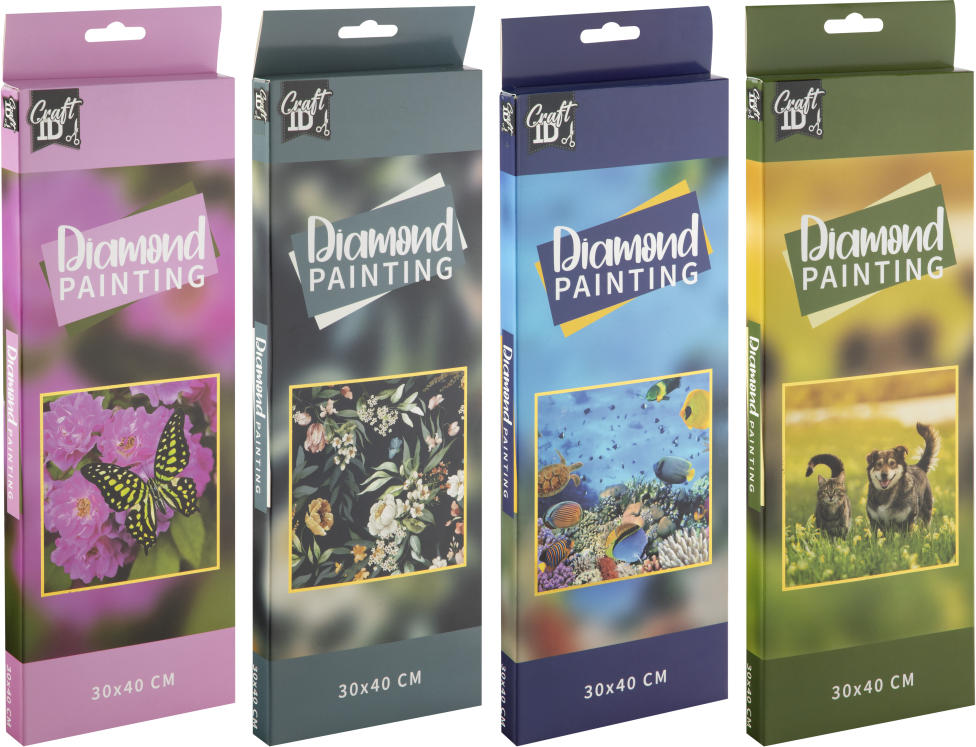 Oblíbená kreativní sada Diamond Painting pro vytvoření zářivého obrázku z barevných kamínků!Jednoduchá a zábavná technika, která rozvíjí trpělivost, soustředění a kreativitu – vhodná pro děti i dospělé. Balení obsahuje: samolepicí plátno s předtištěným motivem (30 × 40 cm), sada barevných akrylových „diamantů“, aplikátor (pero) na nanášení kamínků, voskový polštářek a miska na třídění kamínků. Čtyři různé motivy.