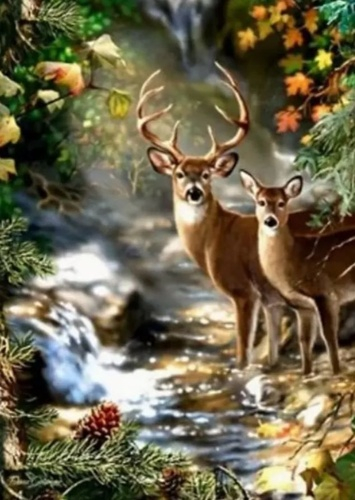 Diamantové malování Jelen a srnka u lesního potoka 30x40cm