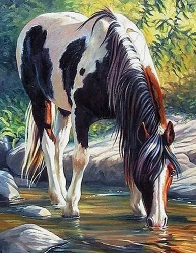 Diamantové malování Kůň v řece
