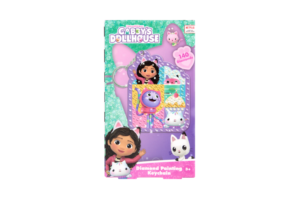 Kreativní sada pro výrobu přívěsku na klíče s motivem oblíbeného seriálu Gábinčin kouzelný domeček. Pomocí speciálních třpytivých „diamantů“ děti i dospělí vytvářejí barevný a třpytivý přívěsek, který lze následně používat na klíče, batohy nebo jako dekoraci. Balení obsahuje misku na diamanty, přívěsek, diamanty + aplikátor.