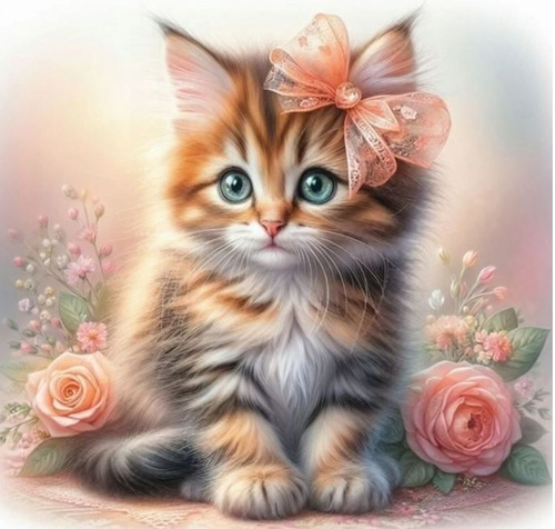 Diamantový obrázek - Kotě a růže 30x40 cm