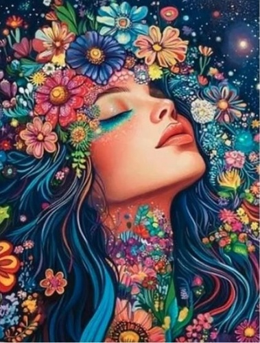 Diamantový obrázek - Portrét dívky s květinami 30x40 cm