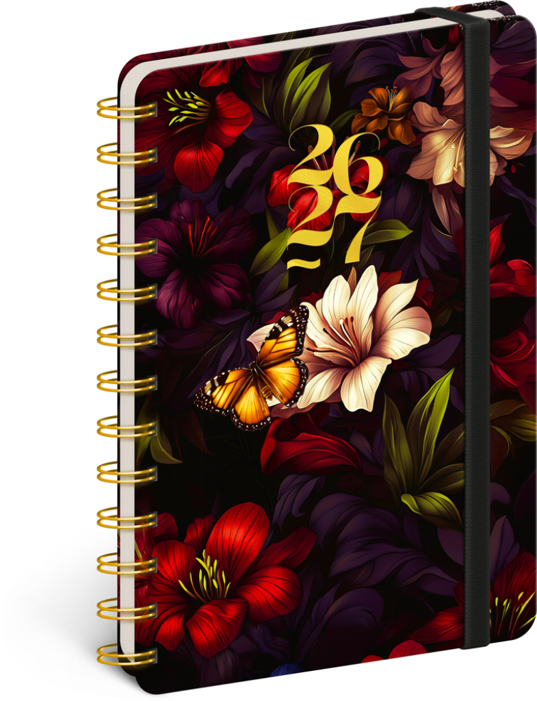 Diář 18měsíční spirálový 2026/2027 Petito - Rudé květy, 13 x 18 cm