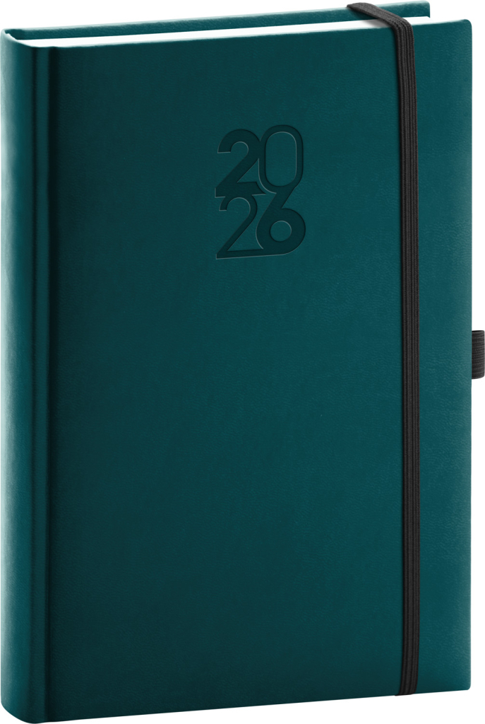 Denní diář Aprint Top 2026 v petrolejové barvě. Rozšíření oblíbené řady Aprint o variantu s gumičkou na zavírání a poutkem na tužku. Denní rozvrh s česko-slovenským kalendáriem a doplňkovou angličtinou, němčinou, maďarštinou a ruštinou. • kalendárium od prosince 2025 • měsíční plánovací kalendář 2026 • měsíční plánovací kalendář 2027 • roční plánovací kalendář 2026–2027 • pracovní plánovací kalendář • svátky České a Slovenské republiky a mezinárodní svátky • rozšířený seznam českých jmen • mapa České a Slovenské republiky • místo pro osobní údaje • textilní záložka • perforované růžky • prostor pro poznámky