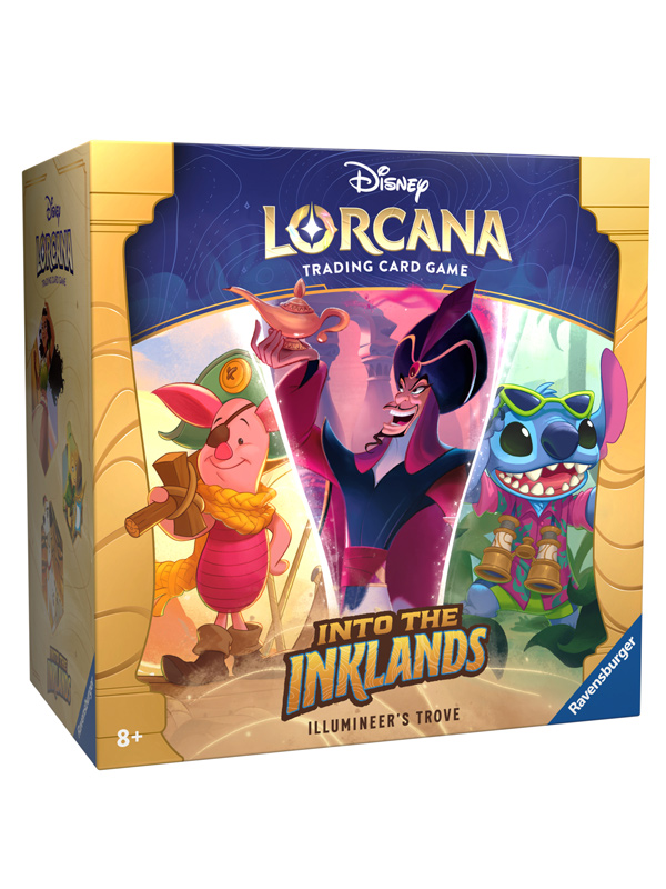 Disney Lorcana: Into the Inklands je již třetí sérií nové TCG hry. Vydejte se do vzdálených a neznámých koutů říše Lorcana. Balení obsahuje: 1 úložný box, 6 oddělovačů karet, 6 kostek, 1 počítadlo a 8 Booster Packů (v každém 12 náhodných karet).