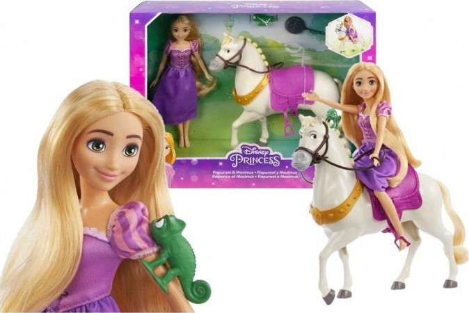 Tato panenka Locika a kůň Maximus, inspirovaní oblíbenými animovanými postavičkami z filmu Na vlásku od Disney, jsou ideální pro všechny fanoušky filmu Na vlásku! Maximus je připraven na dobrodružství díky odnímatelnému sedlu a otěžím. Kolena panenky Lociky se ohýbají pro jízdu na Maximovi po království a panenka má na sobě látkový obleček v její typické fialové barvě. Locika má dlouhé vlasy a kartáč ve vzhledu pánve na smažení pro spoustu zábavy při česání a úpravě! Součástí je rozkošná figurka Pascala, kterou lze připnout na ruku Lociky nebo Maximovu hřívu.