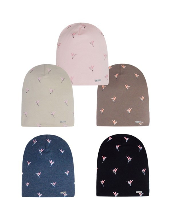 Dívčí bavlněná čepice - dvouvrstvé - zdobené potiskem a nášivkou - náhodně vybrané barvy: růžová, tmavě modrá, černá, moka, béžová Složení: 95% bavlna, 5% elastan