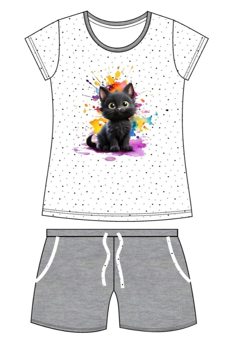 DÍVČÍ DĚTSKÉ PYŽAMO KR 245/109 ČERNÁ KOČKA bílá 98/104