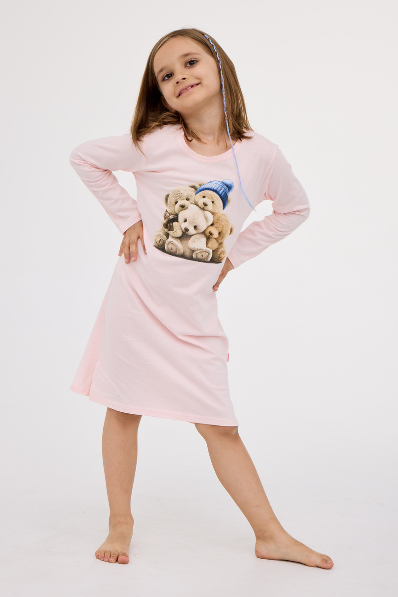 Dívčí noční košile CORNETTE BEARS 2 549/196 je příjemnou a stylovou volbou pro klidný spánek. Je vyrobena z měkké, 100% bavlny a zajišťuje maximální pohodlí a volnost pohybu po celou noc. Model má dlouhé rukávy a kulatý výstřih, což mu dodává lehkost a dívčí půvab. Přední stranu košile zdobí barevný potisk s veselými medvídky, který se jistě zalíbí každé holčičce..